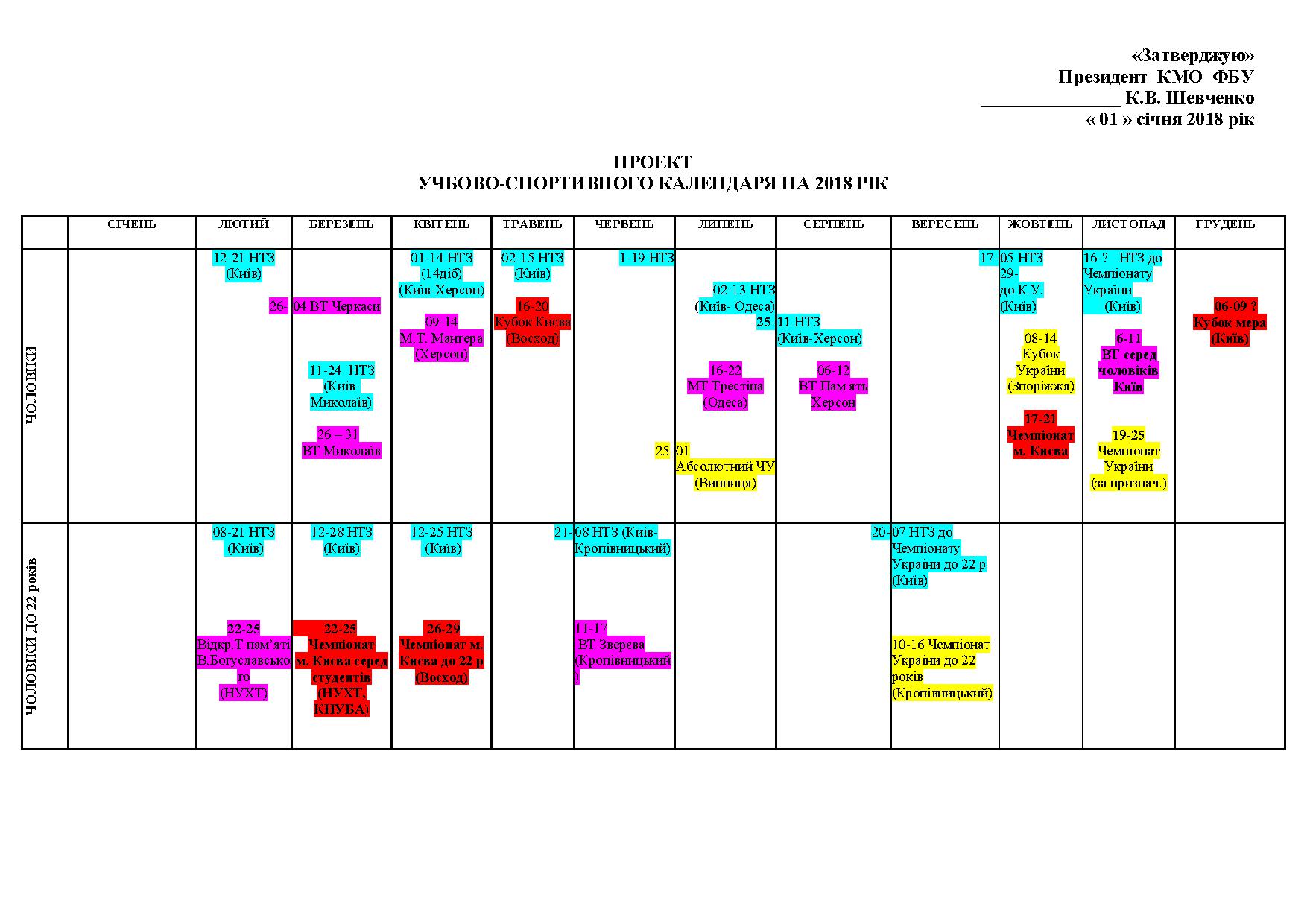 Календарний План Змагань з боксу на 2018 рік м. Київ :