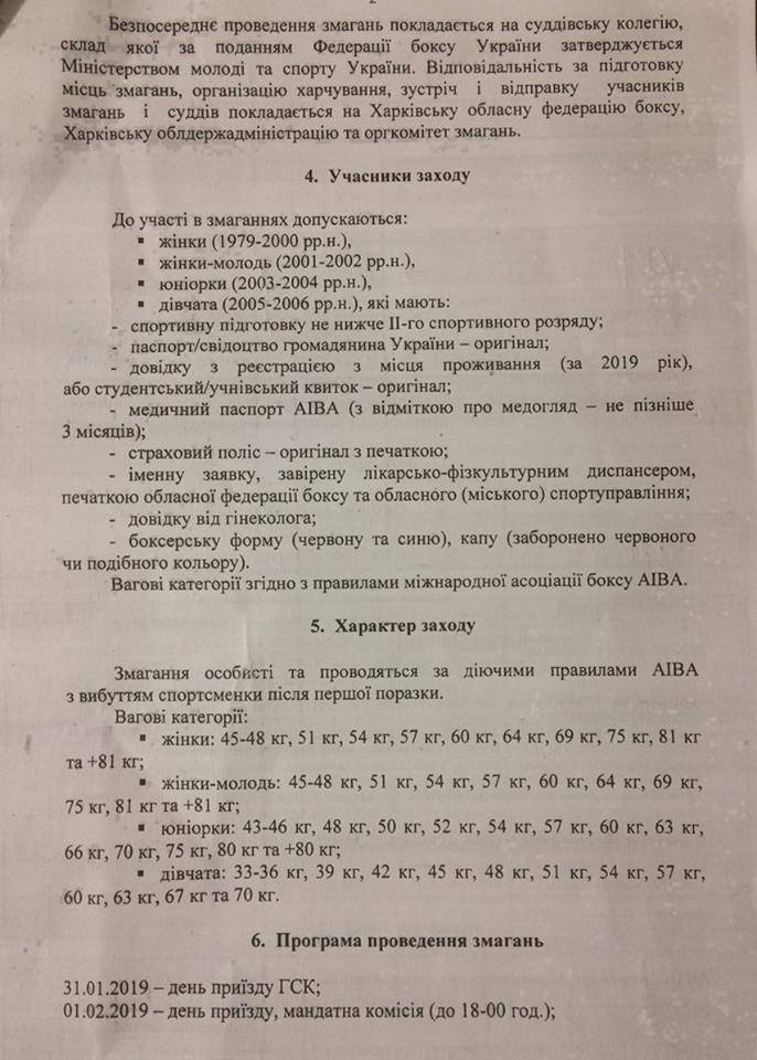 Регламент про проведення Чемпіонату України з боксу серед жінок еліти, молоді, юніорок та дівчат