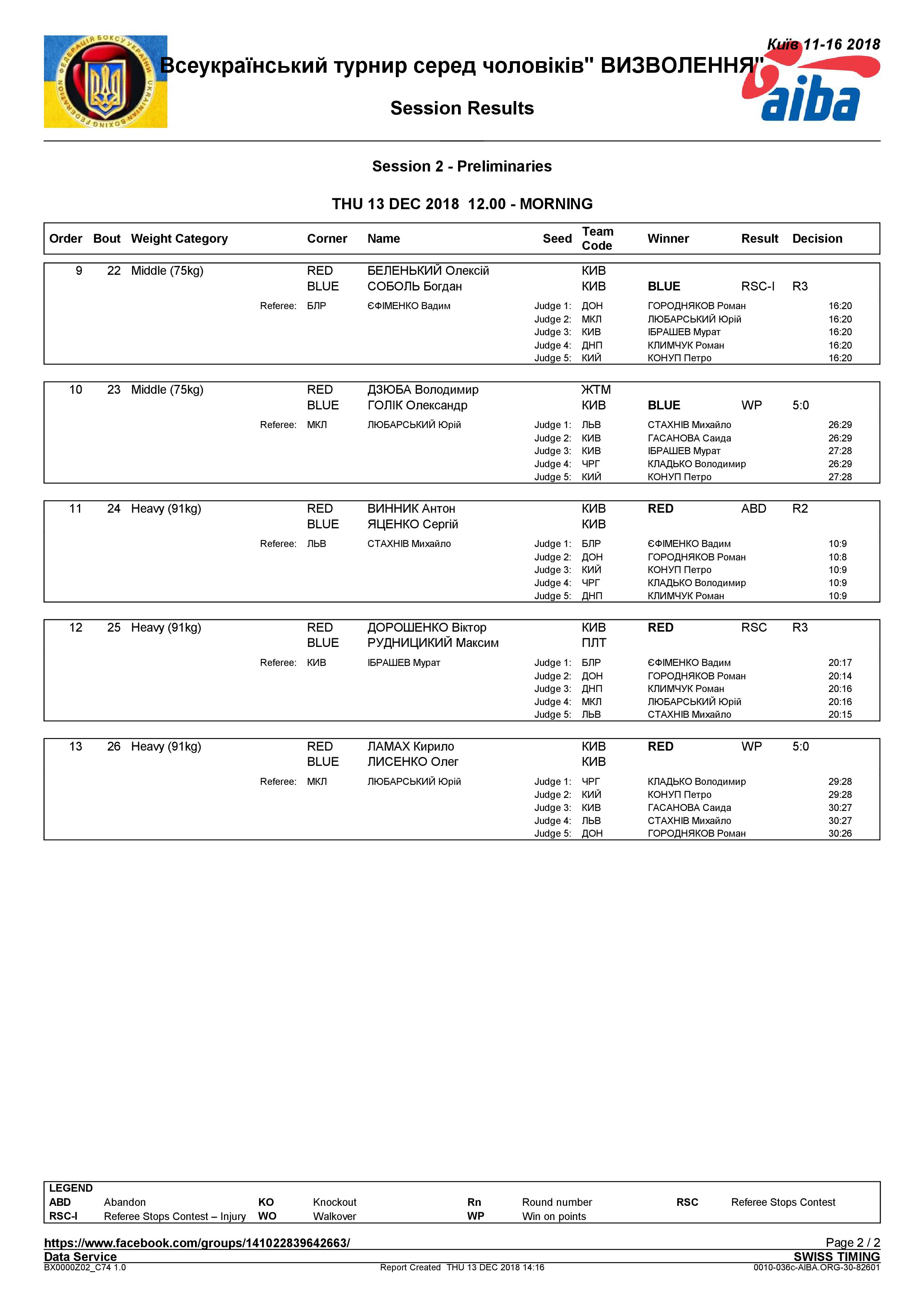 Результаты 13.12.2018 турнир " ВИЗВОЛЕННЯ" Киев