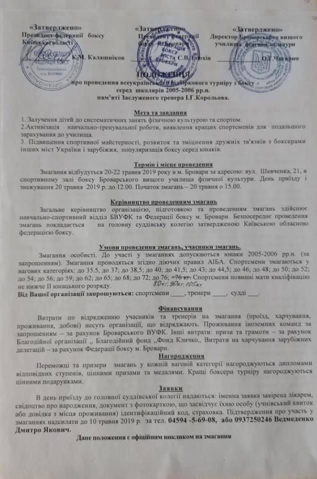 З 20 по 22 травная в місті Бровари на базі Броварського Вищого Училища Фізичної Культури відбудеться традиційний турнір з Боксу пам`яті видатного тренера